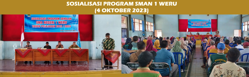 Pada hari Rabu, 4 Oktober 2023 telah diadakan pertemuan orangtua siswa kelas X Fase E, yang bertempat di aula SMA Negeri 1 Weru. Pada kesempatan yang berharga tersebut, Bapak Kepala Sekolah, Drs. Sumarman, M.Pd dan Bapak Ketua Komite, Bapak Sumardi telah melakukan pemaparan program sekolah untuk Tahun Pelajaran 2023/2024, antara lain: sejarah berdirinya SMA Negeri 1 Weru, keadaan dan kondisi sekolah saat ini, program ekstrakurikuler siswa, tata tertib sekolah, bantuan dari pemerintah (KIP dan PKH). Sekaligus ada pemaparan tentang PPDB SMA Negeri 1 Weru dan kondisi masjid SMA saat ini.